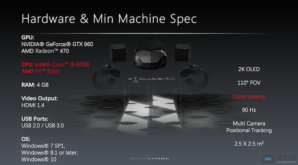 这些配置与Oculus去年在OC3开发者会议上公布的最新最低规格需求一致。Oculus系统,采用专门的ASW或者ATW来减少运行Rift头显所需的硬件规格。虽然没有宣布Hypereal实现这个规格的方式,但是他强调降低的规格将让VR更有助于被接受。