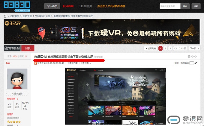 不过和这个对外口号截然不同的,是“玩VR”在自家论坛里的标题:“免费游戏哪里找,快来下载VR游戏大厅!”既要让玩家免费玩游戏,又要“维护游戏版权”,难道之前那140万的版权费是由“玩VR”平台垫付的吗?