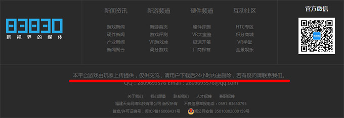 不过页面底部的一句话让我们明白,这一切都是套路。“本平台游戏由玩家上传提供,仅供交流,请用户下载后24小时内进删除,若有疑问请联系我们。”这不是过去那些游戏盗版网站、软件盗版网站以及视频盗版网站最常用的护身符吗?难道推脱第三方上传,就没有盗版的责任了?