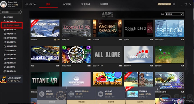 根据软件显示的数据,“玩VR”平台目前一共上线了606款游戏,其中下载排名靠前的均显示为“免费游戏”。