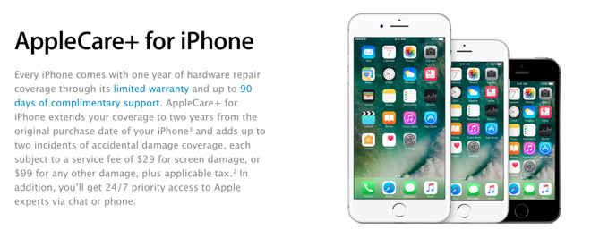 这次改变意味着 AppleCare+ 可以在 iPhone 标准的 1 年保修期内购买,并使得 AppleCare+ for iPhone 与 AppleCare for Mac 和 Apple TV 相同,购买期限都是买设备之后的 1 年内。