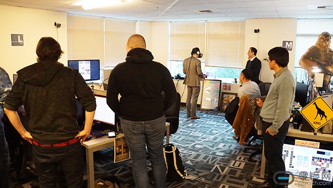 交流团在这里主要体验了Oculus VR暂未公开的多人射击对战项目以及最新版本的硬件。不过考虑到Oculus的官方销售渠道尚未进入国内,我们更关注的其实是其对VR相关应用的推进。