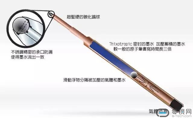 飞梭太空笔除了拥有特殊油墨和独家密封技术之外,还有经过27道工序制成的超坚硬碳化钨笔珠和不锈钢笔尖精密结合。