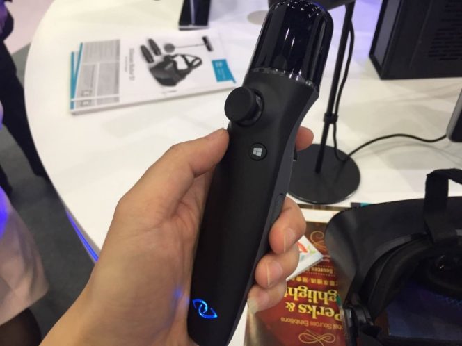 作为微软Holographic平台的内地唯一代表,3Glasses的蓝珀S1头显(PC VR)在分辨率上略微领先HTC的Vive产品,并且网格感较轻。此次展会他们发布了最新的S1手柄互动套件和全套设备(包含2K分辨率头显、定位器和手柄),只需2999元。