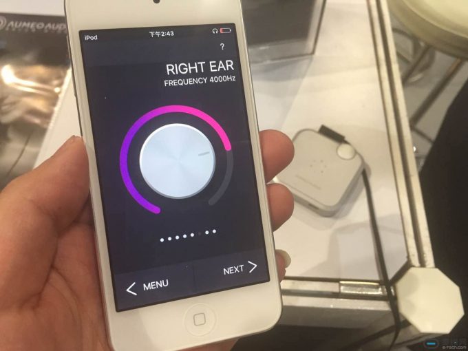 有趣的声音调整器:用户首先戴上耳机,进行“听力适配”——设备会通过耳机发出不同频段的声音,如果你听到了就点“Next”,声音太大就调低音频到听力的极限,反复多次,设备便可获取你从125Hz到12.5KHz的听力情况。记录好用户数据以后,便可以开始听音乐了,这时候设备将补足你听力缺失的部分频段,让你享受完美的听音体验。