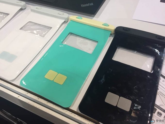 手机防水袋+NFC按键:如果你认为防水是最大卖点就大错特错了。由于触屏手机在水下会失效(水是导体,导致电容屏失灵),于是他们设计了2个NFC的“按键”用来控制相机的拍摄和模式切换。