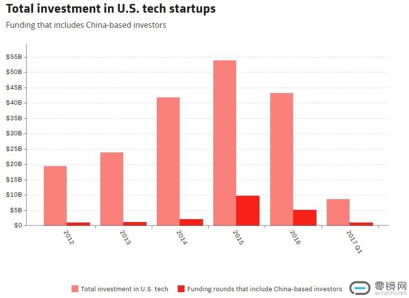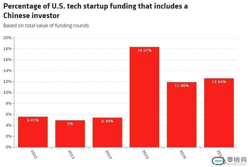 根据调查公司CB Insights提供的数据显示,中国企业参与的在美多轮融资的总体规模在2015年已经达到高峰,当时总金额估计大学有100亿美元,相当于今年美国科技初创企业总融资德额的五分之一。相比之前,2015年中国公司参与的美国科技企业融资规模增长了4倍。