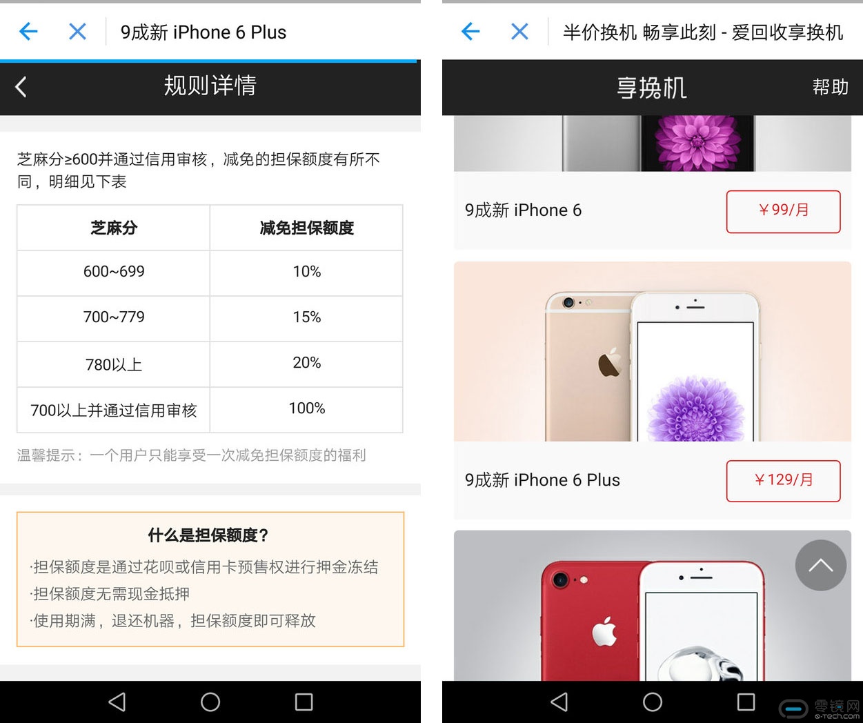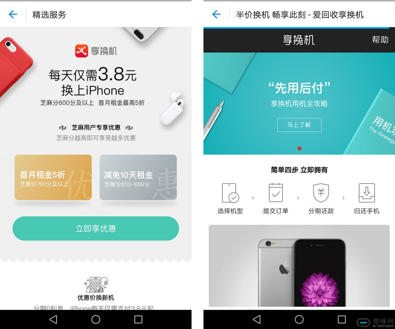 在马云的商业帝国里,支付宝的目的是要将人民的生活涵盖到方方面面,从根本上方便人民的生活,提供生活水平。近日,爱回收旗下信用租机服务平台“享换机”与芝麻信用达成战略合作:芝麻信用分在600分及以上的用户可享受免押金租新手机服务,租约期间“先享后付”,只需为使用付费,不再为残值买单。