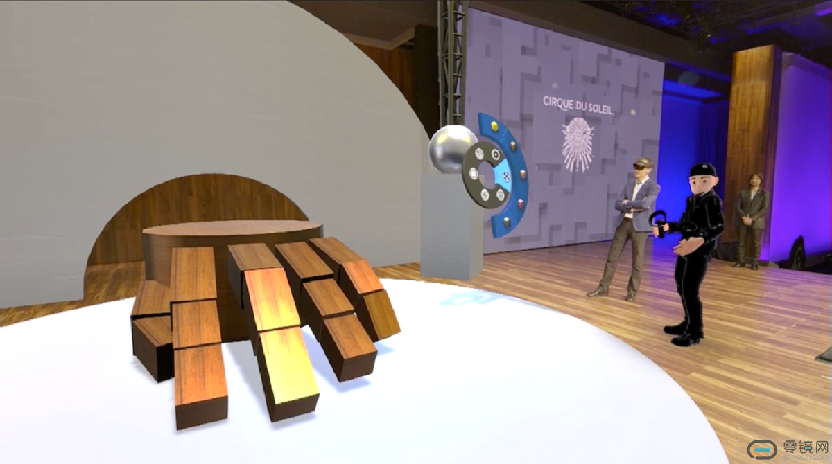 团队有个想法,想要为即将到来的产品设计一个新的舞台布局,从一个菜单中改变和配置简单的物料。这些物体能够被任何一个成员进行自由移动,所有人能够实时看到全息布局的改变。然而真正的优势在于,在大西洋彼岸的欧洲团队成员也能够实现输入。新的团队成员作为一个轻微的卡通化形象进入HoloLens穿戴者的视野中。新来的人被说成穿戴着微软即将到来的VR头显,而非HoloLens。尽管这个令人影响深刻的社交VR展示被说成是实际应用程序的一部分,但是与微软确认后得知,该交互是预先录制的。