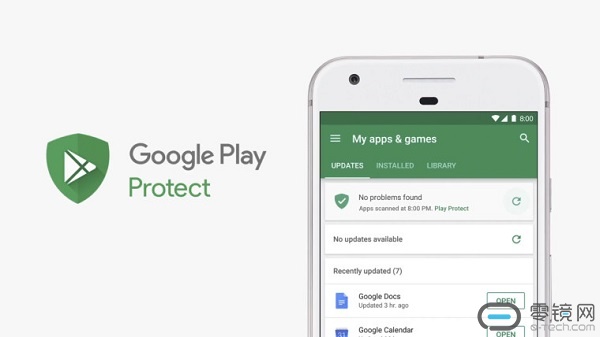 Google Play Protect 可在每一台带 Google Play 的设备上存在着,新特性优化了 Android 在用户眼中的安全性,在 Play Store 中会有“Play Protect 正在扫描…”、以及“扫描未发现问题”等提示。