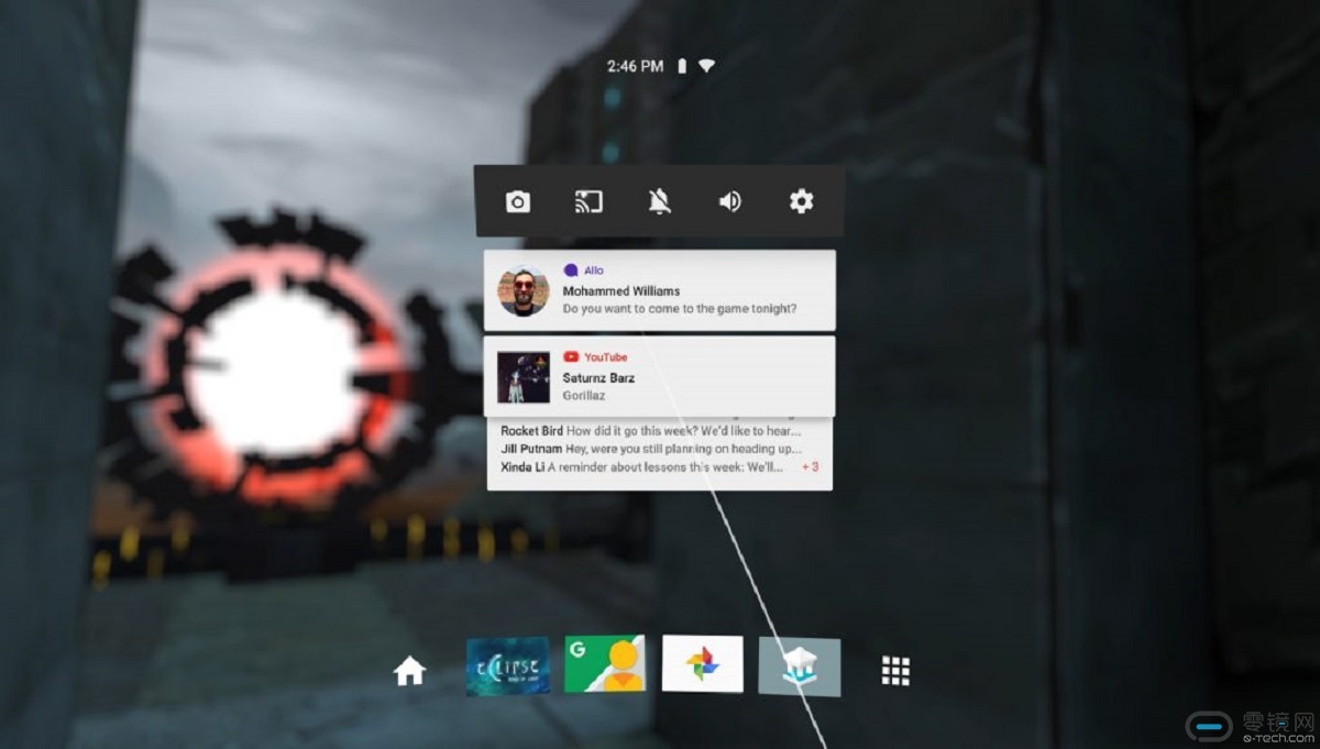 2.0更新将为所有的VR体验增加一个控制面板,这样你就能够查看系统通知、更改设定、暂停体验、以及从应用程序切换至另一个应用程序等等。另外,这包括对2D系统UI的支持。