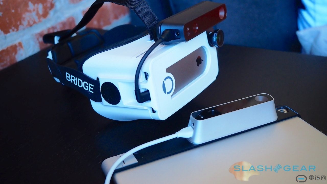 现在该技术继续发展,能够将其安装在混合现实头显上。被称为Bridge(桥),它采纳了与谷歌Cardboard/Daydream和三星Gear VR相似的策略,将智能手机放在头显中。然而,尽管 Bridge被设计用来容纳苹果以便利用其摄像头,但真正明智的事情在于通过Lightning安装在其顶部的结构传感器。
