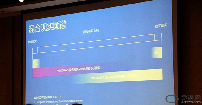 微软的严飞先生分享了当前微软在VR、AR、MR上的研发投入和进展,最为值得我们关注的毫无疑问是微软对“混合现实频谱”的定义。
