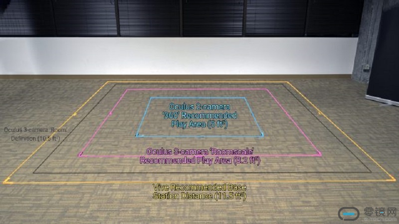 事实上,Vive的Steam VR追踪技术仅需要墙上的电源提供两个额外的传感器来实现11.5*11.5英尺的区域追踪。另一方面,Rift两个传感器(360构造)提供的追踪区域仅为5*5英尺,并要求两个传感器直接连接到主机上,它也意味着更具挑战的线缆管理。另行购买第三个传感器需要花费60美元,追踪区域能提升至8.2*8.2英尺,第四个传感器能够提供一个更大的区域,但一些电脑采用更多的传感器在可用的USB带宽中却常常出现问题。Oculus官方建议是增加超过3个传感器可能会得不偿失。