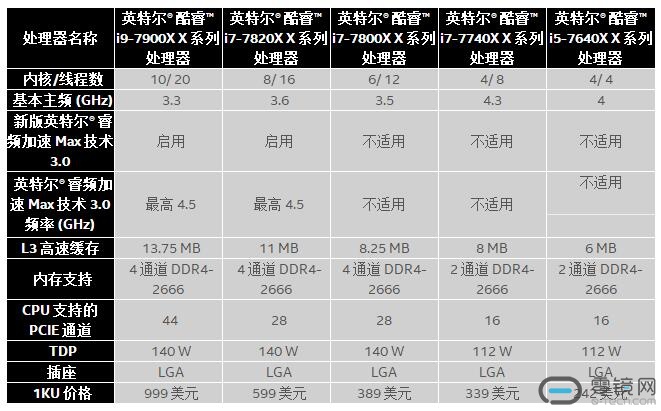 此次开放预购的产品如下:英特尔酷睿i5-7640X处理器(建议零售价242美元),英特尔酷睿i7-7740X处理器(建议零售价339美元),英特尔酷睿i7-7800X处理器(建议零售价389美元),英特尔酷睿i7-7820X处理器(建议零售价599美元)和英特尔酷睿 i9-7900X处理器(建议零售价999美元)。12核处理器预计将于8月开始发货,14-18核处理器预计将于10月开始发货。