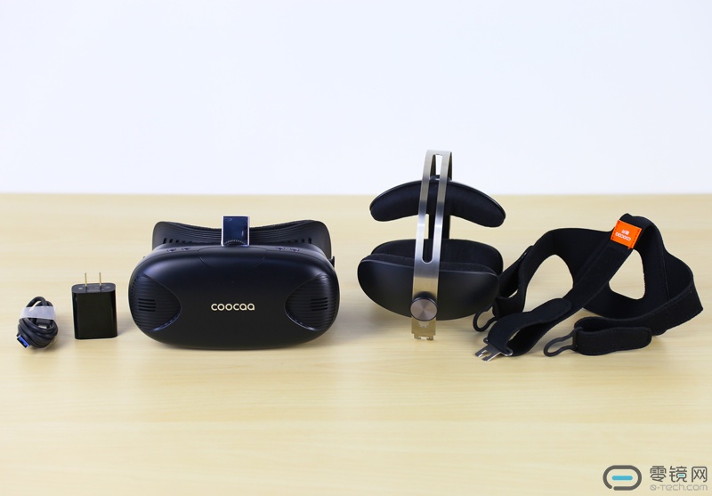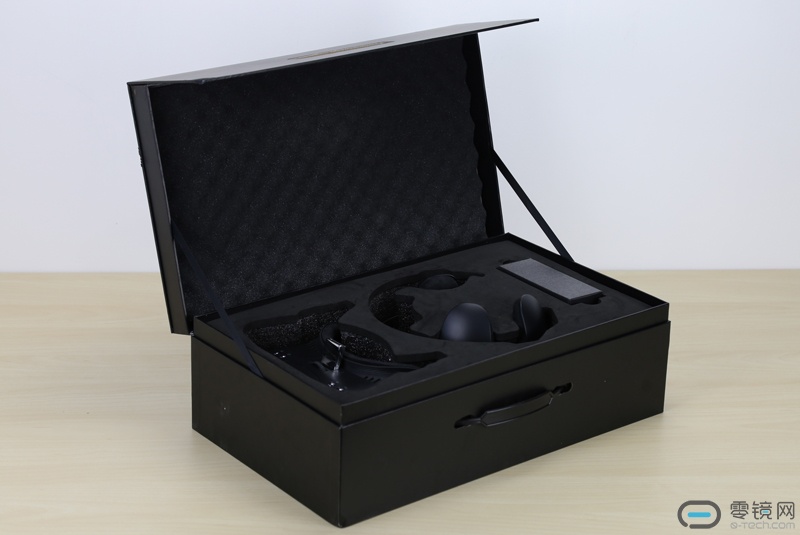 打开箱体,酷开VR一体机随意门G1就躺在有一定防摔防震能力的高密度海绵中。箱体设计适合日常携带使用,大小与43码的球鞋盒相当。从左到右依次为头显、金属头戴和配件盒子。