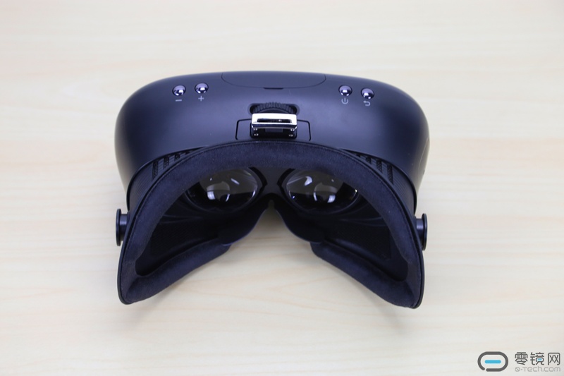 下面看下细节:头显上方4个按键从左到右分别是返回键,电源键,音量加和音量减。中间的齿轮是瞳距调节,调节一个合适的瞳距非常重要,可调节范围还蛮广,主要调节方向是缩小瞳距。加上显示屏做的防蓝光、防近视的设计,对于中小学生来说无疑是非常贴心的设计。