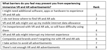 根据Vibrant Media的最新研究,需要额外的软件、应用程序和硬件是阻止人们体验虚拟现实(VR)和增强现实(AR)数字广告的最大障碍。