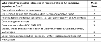 Vibrant Media的调查发现,34.4%的受访者看过360度视频,但是,只有15.4%的消费者在VR中体验过广告,只有10.4%的受访者看过AR广告。