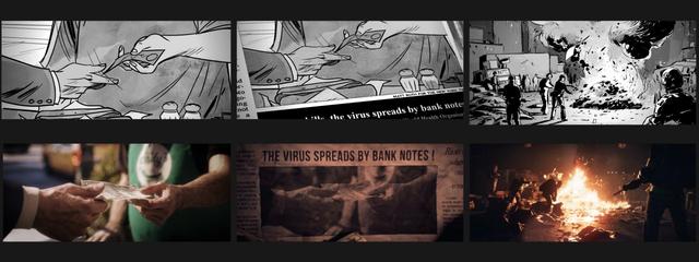 想要掌握好视频的节奏和绝佳的镜头语言?制作人员首先需要绘制出海量的分镜手稿和设计图。然后挑选并拼接成最终想要呈现出来的样式。所最终的手稿基本与视频成品无异,下面这些图所展示的画面正是制作人员通过手稿来制作出的每一帧画面。