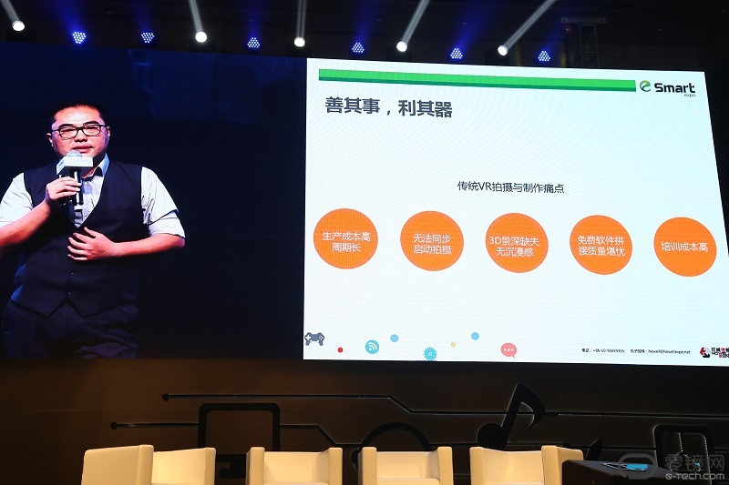 在eSmart下午场的活动中,观界科技CEO刘天成做了《虚拟现实作品的拍摄与逻辑》的主题演讲。