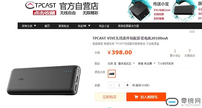 其实电池价格倒是不贵,官方的直营网店标价398元/块,多买几块对商业运营也算不上压力。但关键在于TPCAST不支持热插拔,再多电池在关键时刻也不管用,还得让顾客停下来等待换电池、匹配、重启……零镜网觉得这对商业化运营来说可谓致命打击。