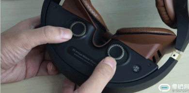 GOOVIS窗镜和嗨镜都可以旋转旋钮调整头带松紧,不同处在于GOOVIS窗镜在后方,嗨镜则在前脑托位置。两者均可调整前脑托角度。柔宇Moon调整松紧的部分有两处,一处与常见耳机相同,一处在耳机与机身连接部分。