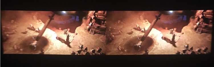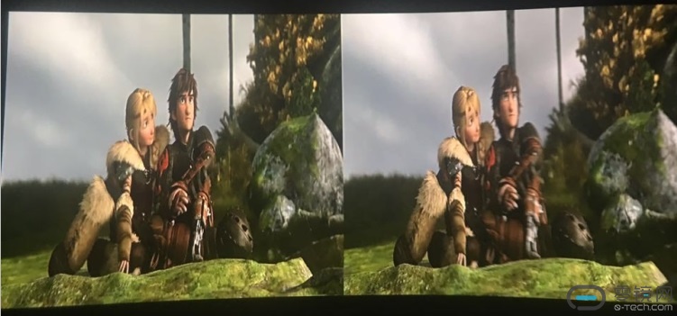 零镜网选择了《驯龙高手》来进行观看。这时需要按下底部2D/3D按键进行切换,但是十分容易碰到调瞳按钮并使其移动。在退出后,用户需要再按下2D/3D按键,退出先前的3D模式。(以下电影画面截图均为手机贴屏拍摄,与实际观影存在较大区别,并不代表实际观影体验。)