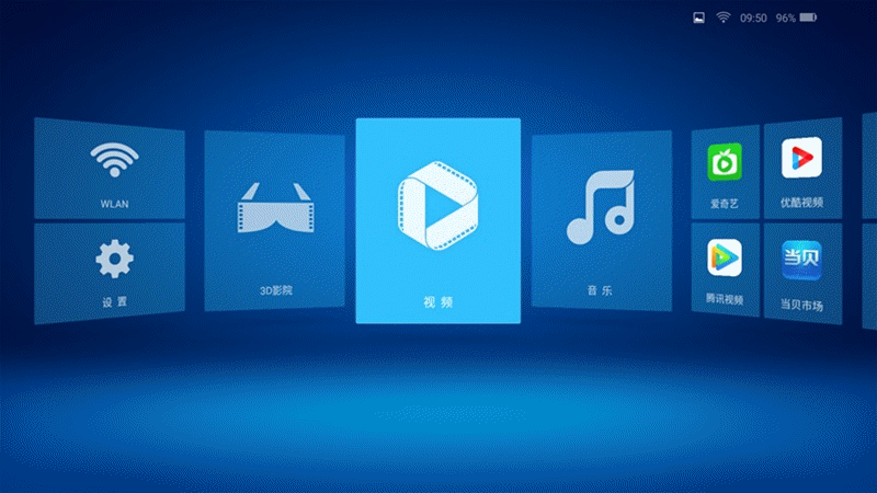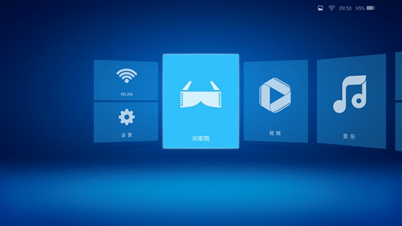 GOOVIS窗镜的界面简单到让人难以置信。主界面只有5个图标,分别为在线视频、系统设置、沙发管家、本地视频、我的应用。