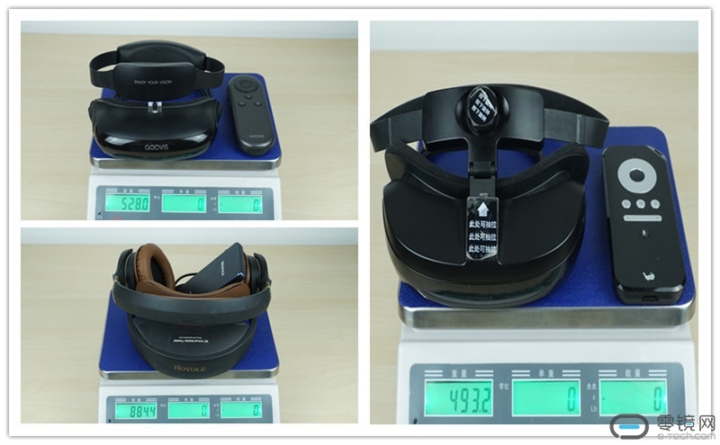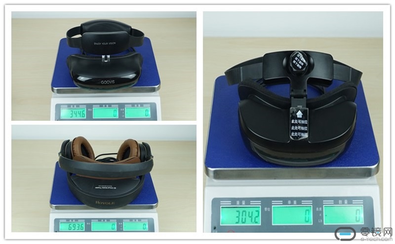 重量最轻的是嗨镜,其次是GOOVIS窗镜,再次是Moon。这样的对比欠佳,因为Moon设备将耳机一体化了,即便使用GOOVIS窗镜和嗨镜也得佩戴耳机,那么再加上耳机的重量。