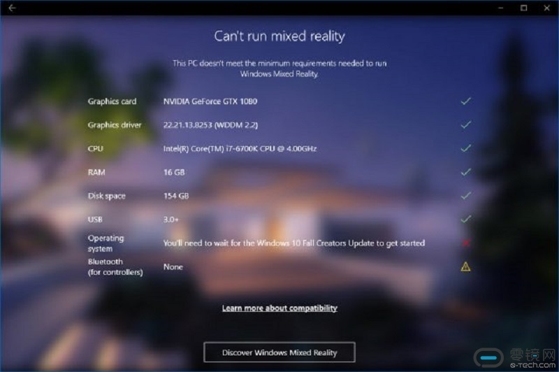 即便你的PC满足规格,这款应用很有可能会弹出“Can’t run mixed reality(不能运行混合现实)”的信息,因为平台需要Windows 10 Fall Creators Update,而这一更新尚未正式推出。