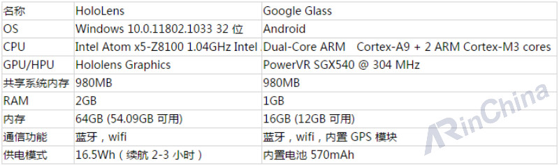 通过以上对比不难发现,虽然两款设备使用系统、处理器及传感器等都不一样,但是在组成部分上它们却是一样的,都是由微型显示器、传感器、电路控制设备及外形框架等组成。