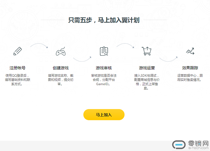 在针对游戏开发者方面新官网加入了“翼计划”的入口,对于游戏开发者而言这个入口功能简单实用,整个流程下来只要五步。