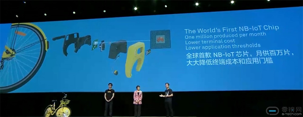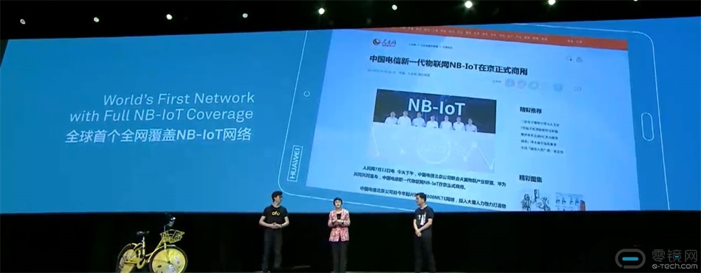 在现场展示的合作案例中,华为邀请到了中软国际和甲壳虫科技展示其ICT能力。随后则是通过OFO展现了其NB-IoT芯片及其智能锁解决方案,并通过中国电信表明其已实现全网覆盖NB-IoT网络。