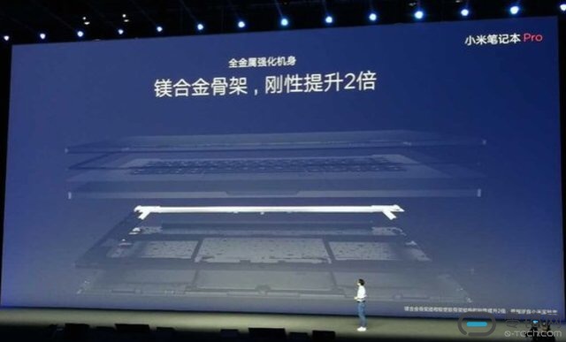 镁合金骨架,现场雷总还播放了用平衡车在笔记本上碾压的视频,结构非常稳定,刚性很高。