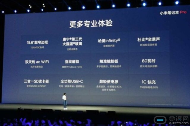 小米笔记本Pro还自带了5中接口类型,SD卡槽,3.5毫米耳机接口,USB 3.0,等等相比苹果MacBook Pro接口可以说是非常丰富了。