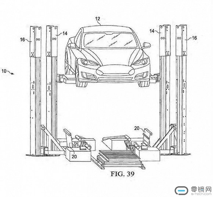据了解,新专利文件中包含有 52 页草图,详细介绍了系统的操作原理,其中包括一个 2 柱车辆升降机系统和配套的电池升降机,可以在15分钟内更换电池。新专利以特斯拉早期开发的一套快速电池更换系统为基础,通过一套专门设备将车辆升起,与普通的汽车升降架看起来类似,该系统的电池更换速度跟加油站加油一样快,但是后来搁置了。电池组的价格很贵,特斯拉需要为客户准备大量的电池组。