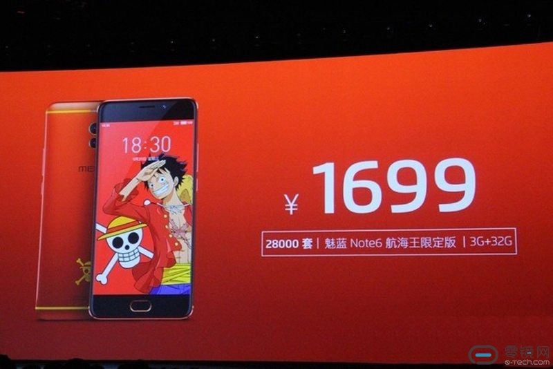 第五款产品是魅蓝Note?6航海王定制版,全新设计与调配的机身配色方案和海贼王定制主题相信会深受海贼王爱好者的喜爱,同时,魅族还为魅蓝Note?6航海王定制版定制了保护壳与充电套装,很是贴心,并且随手机包装盒还附送《航海王》漫画。魅蓝Note?6航海王版1699元起售。