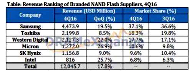 以往套路中,涨价往往伴随着减产,人为地调整了供需关系。而减产,也往往会伴随市场份额的下降,份额会更多地被没有减产,依旧坚持相对更低价出货的厂商拿走。但深挖本轮涨价,你会发现一个比较奇怪的现象,跟抨击三星故意调价相悖,三星的存储芯片市场占有率依旧是全球最大,而且相比去年上半年,无论是NAND还是DRAM份额,三星都在去年第4季度和今年初获得了进一步提高,分别达到全球市场的47.5%和38%,整体占有率37.1%,明显高于上季度36.6%的水平。