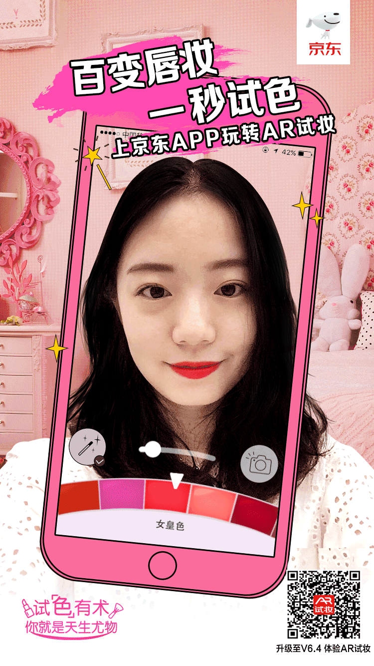 以京东AR试妆为首的AR购物体验工具,通过真实世界与虚拟世界信息的“无缝”衔接与合成,为用户带来真实场景体验与便捷的购物方式,更为品牌与消费者之间带来新的交互方式。京东通过强大的技术后台,直接将功能搭载于商品主图,用户只需点击试装按钮即可看见上装效果,应用非常便捷,极大地提升了用户的购物体验。