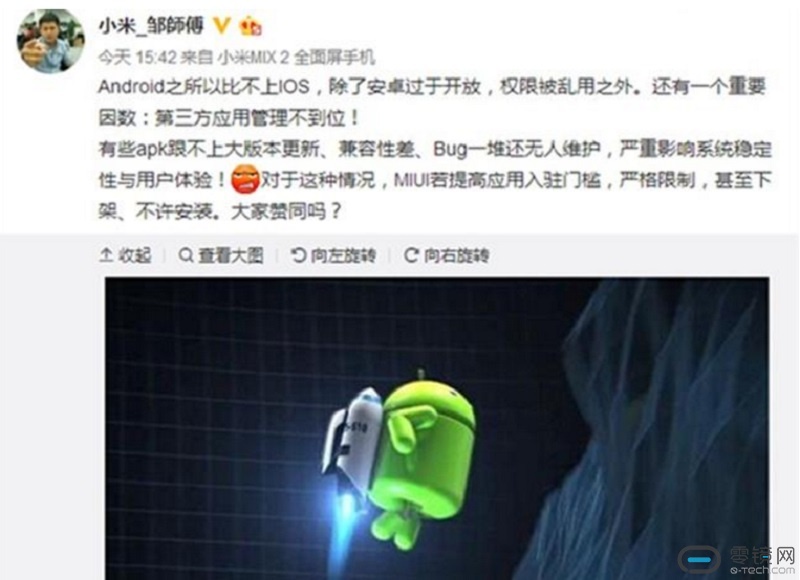 此外,即便躲避开手机厂商,却难以躲避开应用开发商。小米工程师@小米_邹師傅曾发微博(现已转为私密)表示,“Android之所以比不上iOS,除了安卓过于开放,权限被乱用以外。还有一个重要因数(素):第三方应用管理不到位。”虽然他指出的是第三方应用兼容性/Bug等问题,但对于用户来说,涉及用户隐私的应用权限也不容小觑。