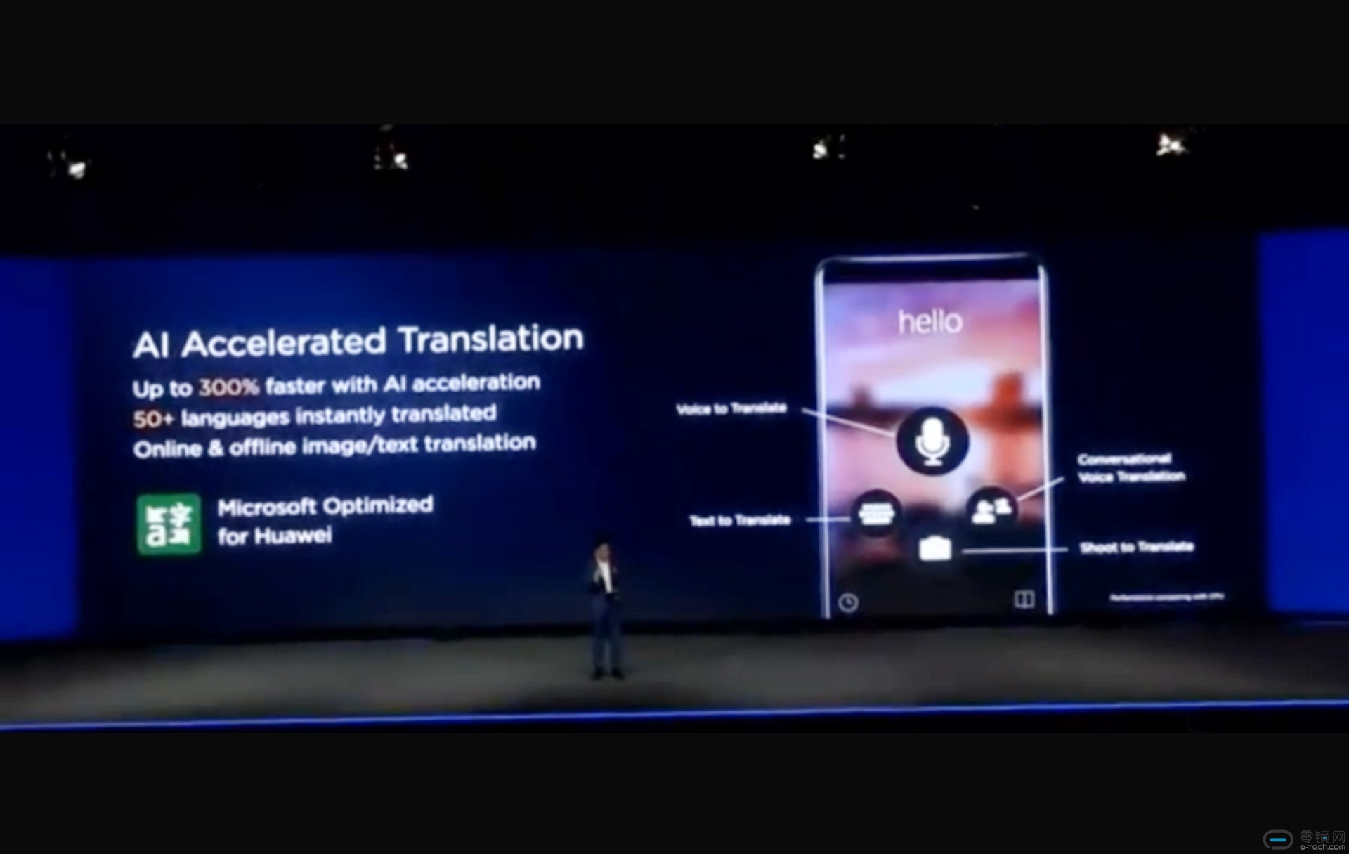 AI带来的便利手机功能,当然少不了机器翻译。Mate10上的翻译功能,是由微软翻译提供的,余承东在发布会上说,这款翻译软件专门针对华为Mate10进行过优化。借助AI芯片加速,这款手机上的拍照翻译功能能够离线运行。