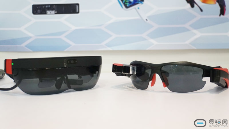 枭龙科技带来了两款设备,一款是骑行用的谷歌眼镜模式的XLOONG(右),在骑行中佩戴能够展示当前速度,但难免陷入谷歌眼镜斜眼看的怪圈。另一款则是为B端用户打造的Techlens T2智能眼镜(左),目前暂不支持手势识别。现场演示电路板更换DEMO、远程协作DEMO让人看到AR眼镜在未来的前景。