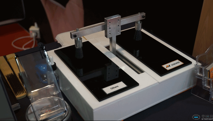 手机在使用过程中可能变脏,现场外国厂商带来了一款清理手机的机器,但是为什么看起来只有两把刷子?