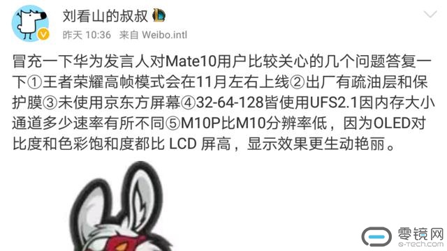 此次,知名大V爆料华为的最新旗舰Mate 10将于11月支持王者荣耀高帧率模式。