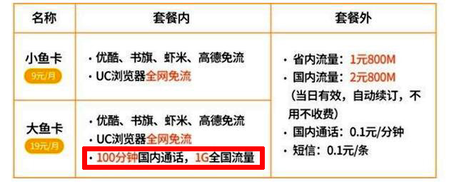 大鱼卡:是阿里与电信合作推出的产品,主打定向流量免费