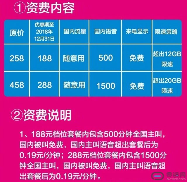 移动的无线流量套餐相当贵,188元起,288元是主流,但是请注意,真实的高速4G流量只有20G。之后会限速,网速不高于1M,而且达到50G之后,就会停止上网功能。理论上大多数人用不完这么多流量,但对某些视频党、直播党来说,这应该算是个坑。当然,相比虚拟运营商来说好一些的,这个套餐终于有500分钟国内通话服务了,实用性高了一些。