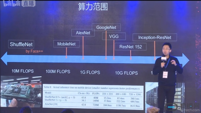 现有两种解决方案:一种是合作实现芯片能力提升;另一种是算法更改,让算法降低计算力的需求,但目前对更小更轻的算法研究不够。Face++通过对ShuffleNET的研究,实现了同样算法性能表现下,速度提升十倍,能够更快地实现手机解锁。