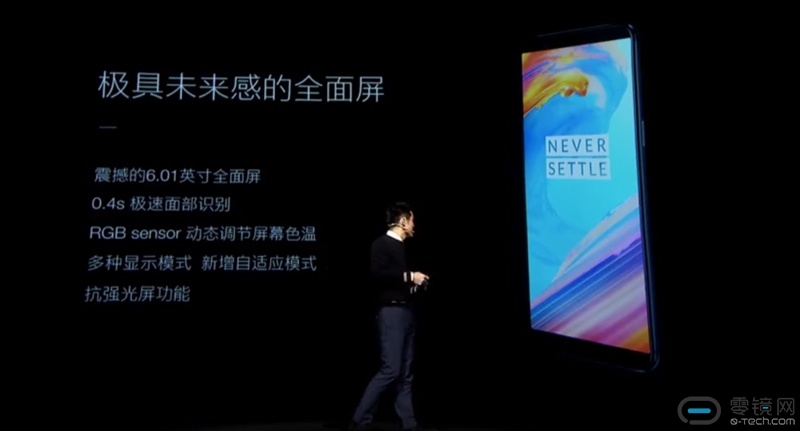 一加一直以来都是以用户体验优先的,刘作虎在发布会上也承认自己以前说的话,背后指纹识别是没有正面指纹识别体验好的。现在为了全面屏吧指纹识别放到背后,用户体验没那么好了怎么办?人脸识别啊! 反正现在2D平面人脸识别技术大家都能做,快至0.4S体验非常好。哦对了,发布会说0.4S业内最快,但是隔壁老大哥OPPO R11s宣称是0.08S,你们开心就好吧。