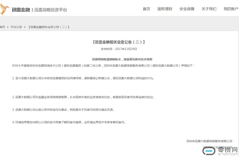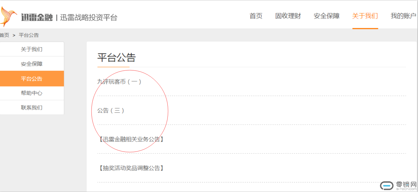 但就是这样一条公告,今天却在迅雷金融官网消失了。那这到底意味着什么?